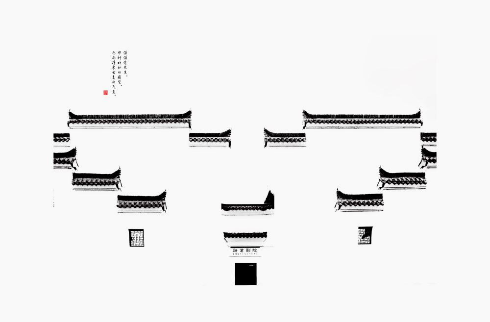 當(dāng)仰視這片屋檐圍合的天空,高聳的馬頭墻,兩端翹起的飛檐,勾勒出中式人文的水墨畫。