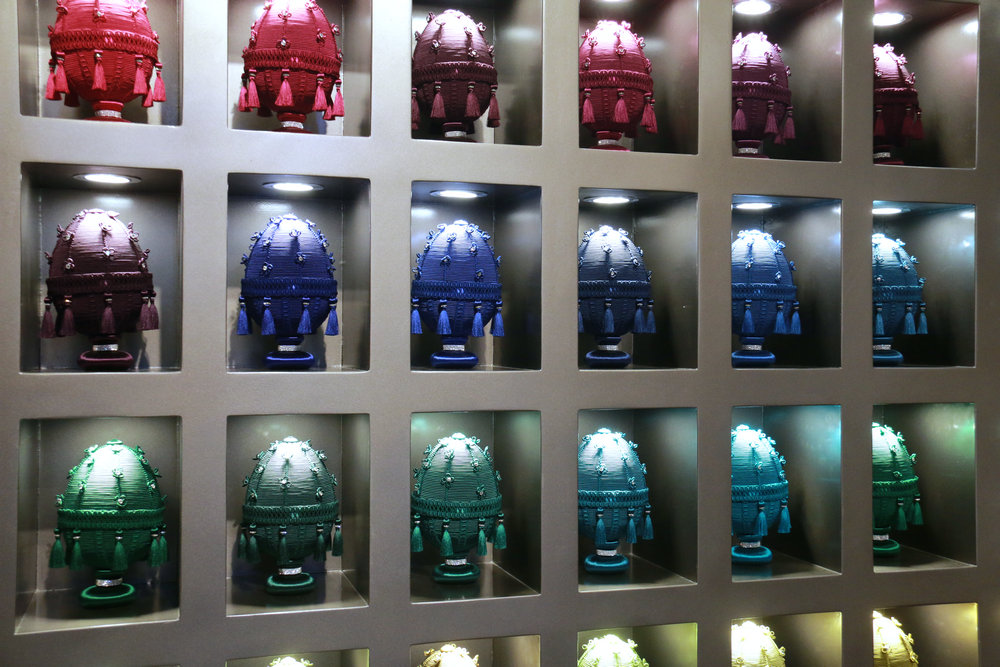 49個法貝熱彩蛋,由滾繩、小穗制作而成,用色彩的層次變化來達(dá)到視覺的震撼。